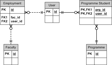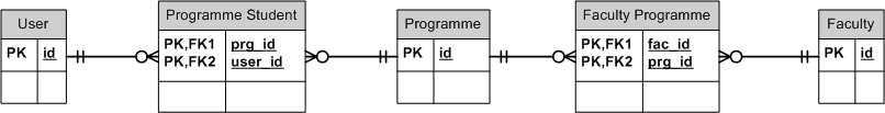 • Student - a user who enrolled in at least one programme. He is then a student at the faculty which runs this programme (diagram).